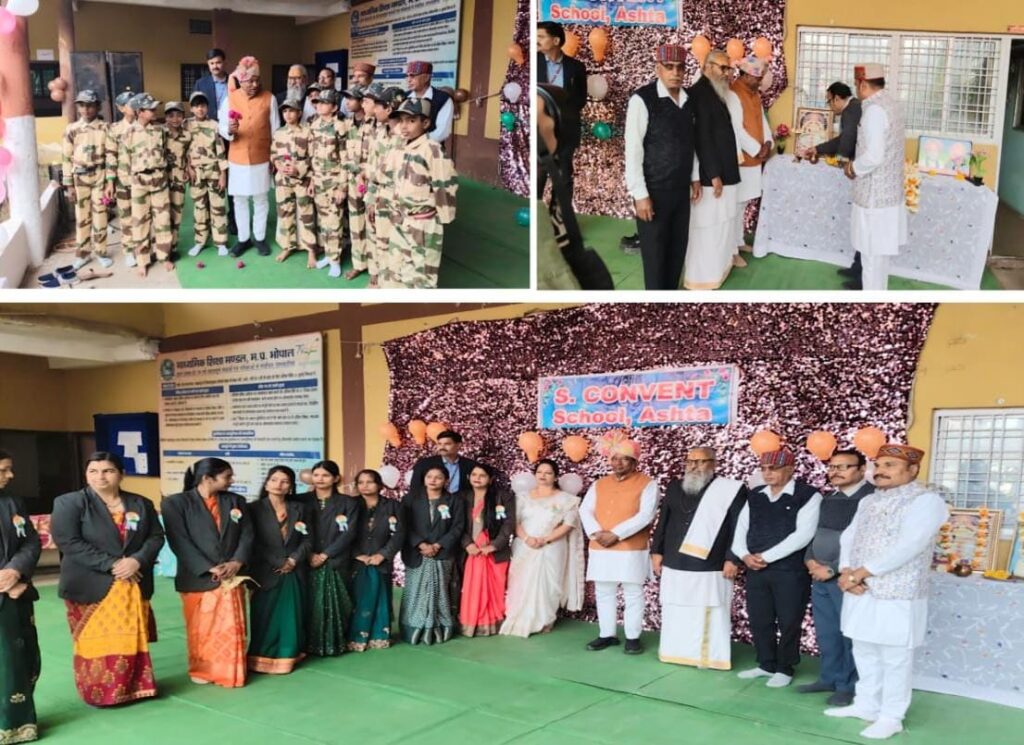 updatenews247.com धंनजय जाट आष्टा 7746898041- संस्था एस कॉन्वेंट हायर सेकेंडरी स्कूल सेमिनरी रोड आष्टा में 26 जनवरी गणतंत्र दिवस बड़े ही धूमधाम से क्षेत्र के लोकप्रिय विधायक श्री गोपाल सिंह जी इंजीनियर के कर कमल द्वारा संपन्न किया गया संस्था में झंडा वंदन आस्था विधानसभा के लोकप्रिय विधायक श्री गोपाल सिंह जी इंजीनियर के मुख्य अतिथि में अध्यक्षता राष्ट्रपति पुरस्कार प्राप्त श्री भागवत आचार्य श्री पंडित संतोष जी शर्मा की उपस्थिति में बड़े ही धूमधाम से मनाया गया है अतिथियों द्वारा सर्वप्रथम मां सरस्वती के चित्र पर