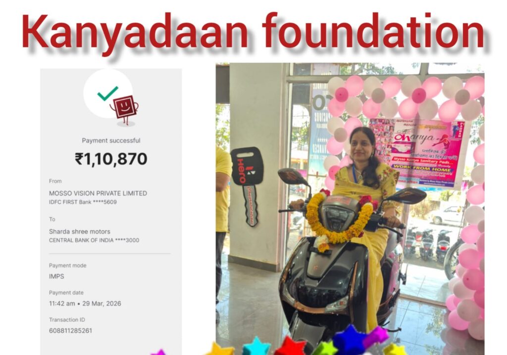 कन्यादान फाउंडेशन द्वारा पायल अग्रवाल को स्कूटी प्रदान की गई