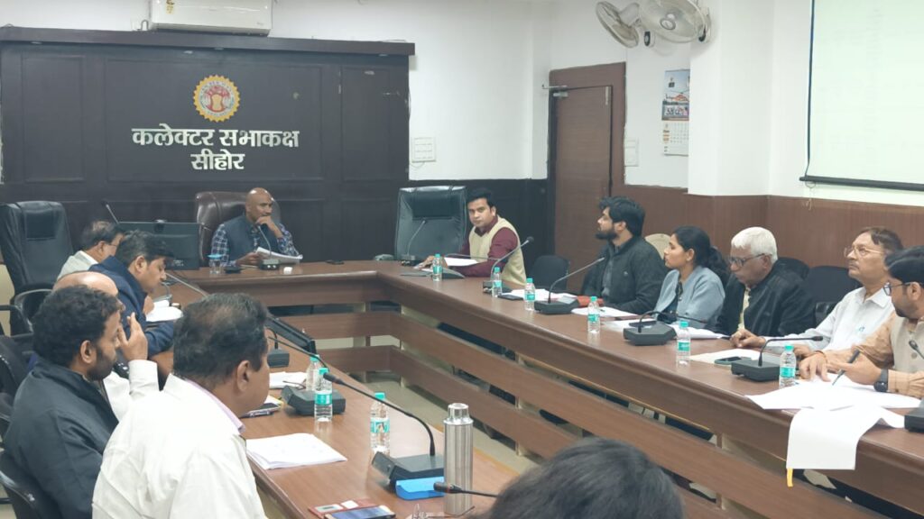 updatenews247.com धनंजय जाट सीहोर 7746898041- कलेक्टर श्री बालागुरू के. ने कलेक्ट्रेट सभाकक्ष में निर्माण विभागों की बैठक आयोजित कर जिले में चल रहे निर्माण एवं विकास कार्यों की विस्तृत समीक्षा की। बैठक में कलेक्टर श्री बालागुरू के. ने सभी संबंधित अधिकारियों को जिले में चल रहे सभी निर्माण एवं विकास कार्यों में तेजी लाते हुए समय सीमा में कार्य पूर्ण करने के निर्देश दिए। उन्होंने कहा कि सभी अधिकारी अपने मैदानी अमले को लक्ष्य देकर उसके अनुरूप कार्य को पूर्ण कराए। इसके साथ ही सभी निर्माण कार्यों में गुणवत्ता का विशेष ध्यान रखा जाए।
