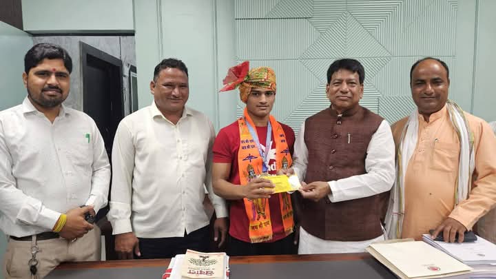 updatenews247.com धंनजय जाट आष्टा 7746898041- छत्तीसगढ़ राज्य के बिलासपुर में आयोजित छत्तीसगढ़ ग्रिपलिन नेशनल चैंपियनशिप कुश्ती प्रतियोगिता में आयोजित अंडर सेवनटीन ग्रुप में आष्टा विधानसभा क्षेत्र के ग्राम हरनावदा के पहलवान जो की जावर के सांदीपनी विद्यालय के होनहार पहलवान छात्र पृथ्वीराजसिंह ठाकुर पिता श्री अकेसिंह ठाकुर जावर ने आयोजित छत्तीसगढ़ ग्रिपलिन नेशनल चैंपियनशिप कुश्ती