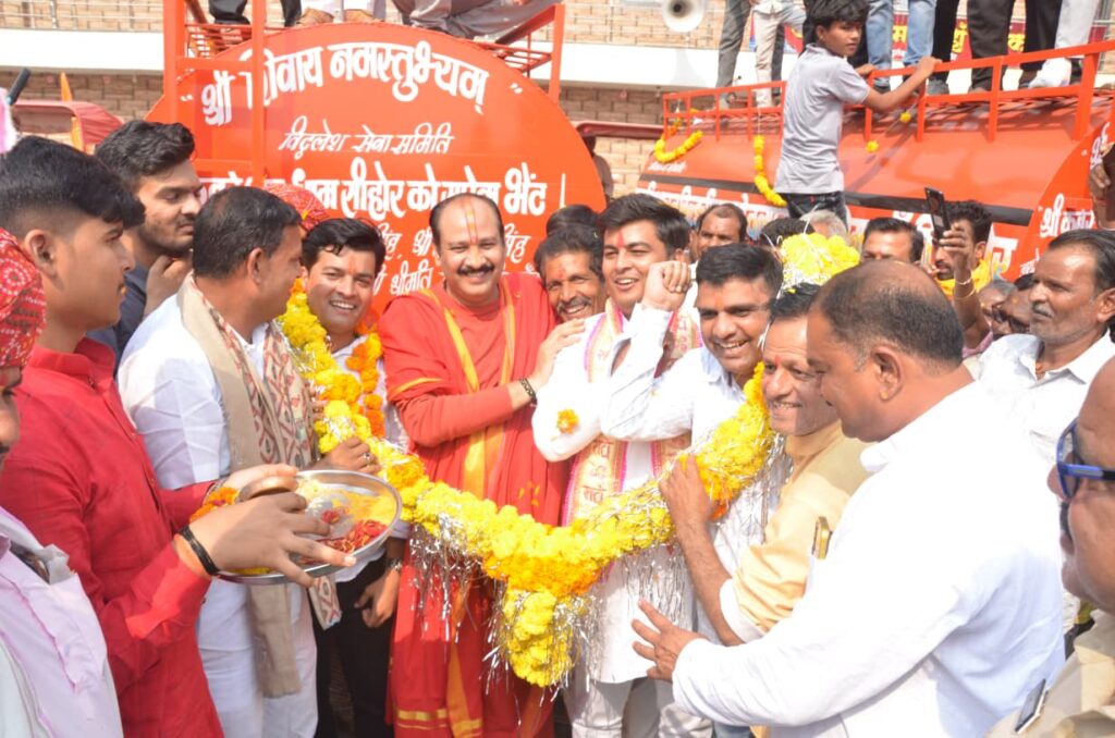 updatenews247.com धंनजय जाट सीहोर 7746898041- शनिवार को जिला मुख्यालय के समीपस्थ चितावलिया हेमा स्थित निर्माणाधीन मुरली मनोहर एवं कुबेरेश्वर महादेव मंदिर में छोटी दीपावली के पावन अवसर पर यहां आने वाले लाखों श्रद्धालुओं को जल उपलब्ध कराने के लिए स्वर्ण भारत बिल्डर्स एंड डेवलर्स प्राइवेट लि. सेमरादांगी सीहोर की ओर से दांगी परिवार से सनातन धर्म से प्रेरित होकर अंतर्राष्ट्रीय कथा वाचक पंडित प्रदीप मिश्रा को विठलेश सेवा समिति को पांच टैंकर प्रदान किए है। इस मौके पर