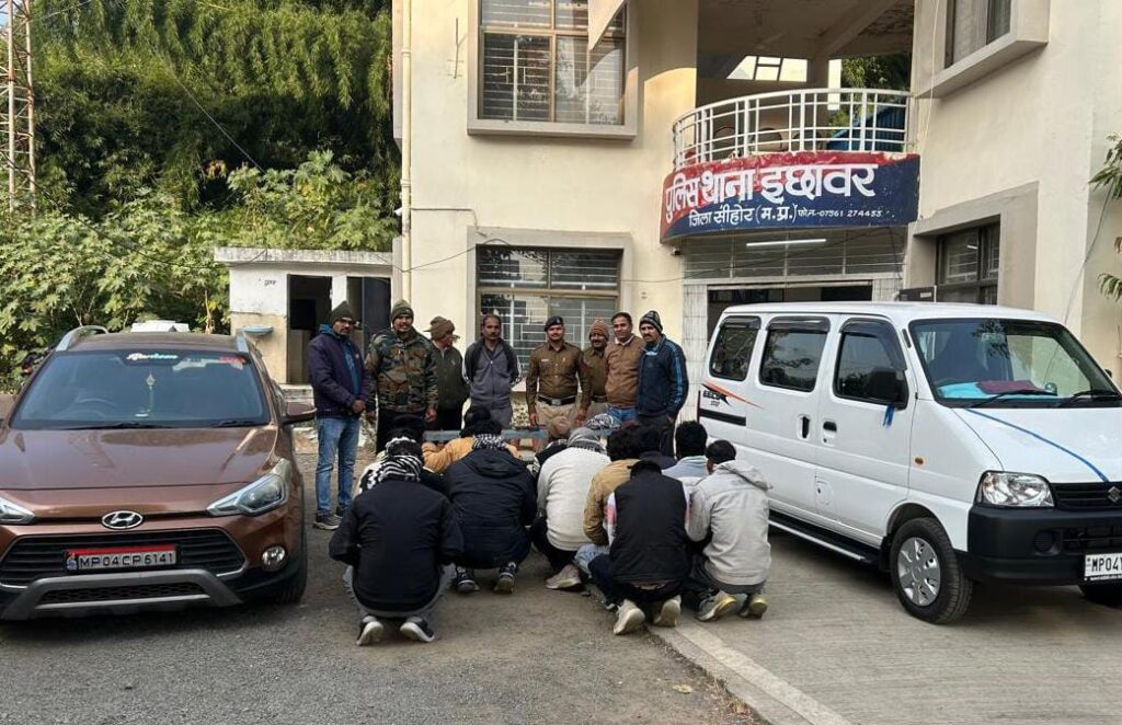 updatenews247.com धंनजय जाट आष्टा 7746898041- पुलिस अधीक्षक सीहोर श्री दीपक कुमार शुक्ला द्वारा जिले में अवैध गतिविधियों पर रोक लगाने हेतु दिए गए निर्देशों के पालन में थाना प्रभारी इछावर निरीक्षक पंकज कुमार वाडेकर के नेतृत्व में गठित टीम द्वारा कार्यवाही करते हुए जुआ खेलते हुए 14 व्यक्तियों को गिरफ्तार किया गया। पुलिस ने मौके से ₹137420/- रुपये नगद राशि एवं 52 ताश के पत्ते, 15 मोबाईल फोन व 02 चार पहिया वाहन जब्त किए हैं।