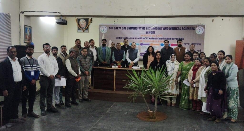 updatenews247.com धंनजय जाट सीहोर 7746898041- श्री सत्य सांई यूनिवर्सिटी ऑ$फ टेक्नोलॉजी एंड मेडिकल साइंसेस, सीहोर के स्कूल ऑफ ला में संविधान दिवस बड़े ही उत्साह, गरिमा एवं राष्ट्रभावना के साथ मनाया गया। कार्यक्रम का शुभारंभ माननीय अतिथियों, प्राध्यापकों तथा छात्र-छात्राओं की उपस्थिति में किया गया। कार्यक्रम की अध्यक्षता स्कूल ऑफ ला की डीन डॉ. अमृता सोनी द्वारा की गई। अपने स्वागत उद्बोधन में उन्होंने