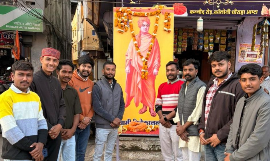 यहाँ पंक्तियाँ स्वामी विवेकानंद जी की ही है स्वामी जी वह शख़्सियत है जिससे आज भारत ही नहीं दुनिया भर के करोड़ों युवा जीवन जीने की सीख लेते है इस अवसर पर नगर पालिका अध्यक्ष प्रतिनिधि रायसिंह जी मेवाडा जनपद अध्यक्ष प्रतिनिधि सोनू गुणवान जी ,वार्ड पार्षद रवि शर्मा जी,रोहित तोमर,सुरेंद्र मेवाडा,आदित्य जैन,मनीष प्रजापति,प्रिंस कुशवाह ,हर्ष कुशवाह,आशीष राजपूत,सोनू मालवीय,ऋषि कुशवाह,ऋषि मेवाड़ा,राज मालवीय अन्य कार्यकर्ता उपस्थित थे