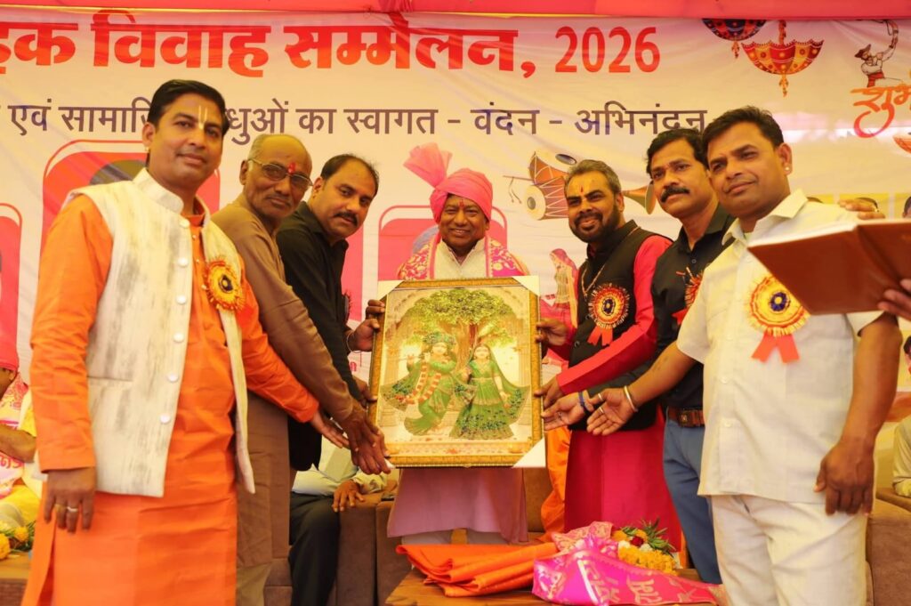 सामूहिक विवाह समारोह में शामिल हुए विधायक गोपालसिंह इंजीनियर,पूर्व जिला मीडिया प्रभारी सुशील संचेती, हिन्दू उत्सव समिति के अध्यक्ष भुरू मुकाती,दिलीप मालवीय,नगर भाजपा की मंत्री श्रीमति नीलिमा बैरागी सहित मंचासीन सभी अतिथियों का वैष्णव बैरागी समाज समिति की ओर से दिनेश बैरागी,बाबूदास बैरागी सहित समिति के सभी सदस्यो ने स्वागत सम्मान कर स्मृति चिन्ह भेंट किया । सामूहिक विवाह समारोह में आज परिणय सूत्र में बंधे सभी 06 वर वधुओं को आशीर्वाद दे कर विधायक गोपालसिंह इंजीनियर ने उपहार भेंट किये ।