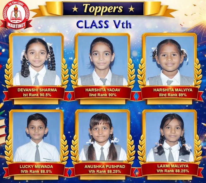 आष्टा (नि.प्र.) – राज्य शिक्षा बोर्ड द्वारा घोषित किये गये कक्षा 5 व कक्षा 8 के परीक्षा परिणामों में नगर के अलीपुर में स्थित मार्टिनेट कॉन्वेन्ट हायर सेकेण्डरी स्कूल का परीक्षा परिणाम शत् – प्रतिशत रहा तथा विद्यार्थियों एवं विद्यालय के लिये उत्साहजनक बात ये रही कि इन कक्षाओं में सभी विद्यार्थी प्रथम श्रेणी में उत्तीर्ण हुये। कक्षा 5 में कु. देवांशी शर्मा नें 90.5 प्रतिशत अंक के साथ विद्यालय में प्रथम स्थान बनाया वहीं दूसरा स्थान कु. हर्षिता यादव 90 प्रतिशत, तीसरा स्थान कु. हर्षिता मालवीय 89 प्रतिशत, चौथा स्थान लकी मेवाड़ा 88.5 प्रतिशत तथा पांचवा स्थान कु. अनुष्का पुष्पद एवं कु. लक्ष्मी मालवीय नें 88.25 प्रतिशत के साथ प्राप्त किया। इस प्रकार कक्षा 8 में कु. रिद्धिमा खत्री नें 90.6 प्रतिशत के साथ विद्यालय में प्रथम स्थान प्राप्त किया तथा दूसरा स्थान कु. रेणुका मेवाड़ा एवं कु. जिकरा खान 90.5 प्रतिशत, तीसरा स्थान कु. कृतिका मेवाड़ा 89 प्रतिशत, चौथा स्थान सक्षम चंद्रवंशी 88.6 प्रतिशत तथा पांचवा स्थान कु. ऐना कुलसुम नें 88 प्रतिशत के साथ प्राप्त किया।