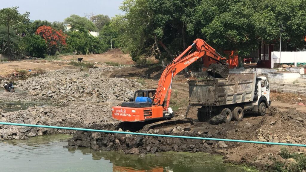 गुरुवार को पोकलेन मशीन की मदद से मलबा और नदी के चट्टनों को तोड़कर करीब 50 से अधिक डंपर की मदद से सफाई की गई। इस संबंध में मिली जानकारी के अनुसार नगर पालिका के अंतर्गत महिला घाट पर पोकलेन और आधा दर्जन डंपर की मदद से नदी से मलबा हटाने का कार्य शुरू कर दिया है। नगर पालिका अध्यक्ष प्रिंस राठौर ने बताया कि जल गंगा संवर्धन अभियान शहर के भविष्य के लिए बेहद महत्वपूर्ण है। नदी की सफाई के लिए पोकलेन मशीन और डंपर का उपयोग किया जा रहा है।