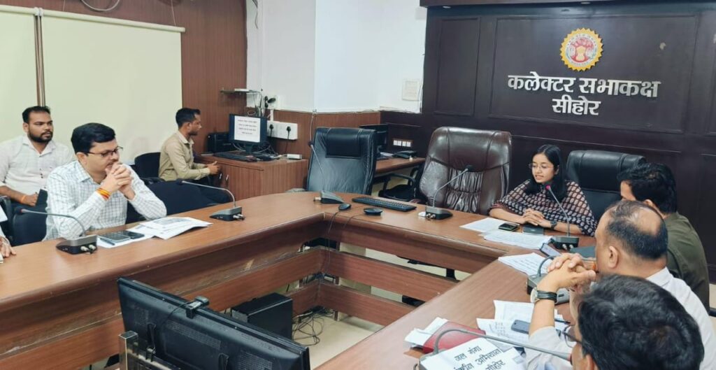 updatenews247.com धंनजय जाट सीहोर 7746898041- जिला पंचायत सीईओ डॉ नेहा जैन की अध्यक्षता में कलेक्ट्रेट सभाकक्ष में पंचायत एवं ग्रामीण विकास विभाग के कार्यों की समीक्षा बैठक आयोजित की गई। बैठक में जिला पंचायत सीईओ डॉ नेहा जैन ने ग्राम पंचायतों में संचालित निर्माण और विकास कार्यों, शासन की योजनाओं के क्रियान्वयन की प्रगति तथा जल गंगा संवर्धन अभियान के तहत किए जा रहे कार्यो की विस्तृत समीक्षा की। उन्होंने उपस्थित अधिकारियों को निर्देश दिए कि निर्माण कार्यों को गुणवत्ता के साथ समयावधि में पूर्ण कराएं। इसके साथ ही उन्होंने शासन की योजनाओं का प्रभावी क्रियान्वयन कर ग्रामीणों तक सुगमता से योजनाओं का लाभ पहुंचाने के निर्देश दिए।
